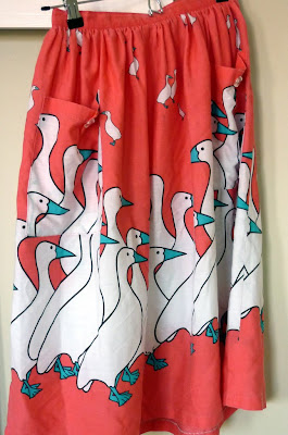 Just like I was happy today to find this skirt in the op shop, which is covered in what look like the very same kind of ducks. Although the op shop woman said "oh, you're buying the goose skirt."