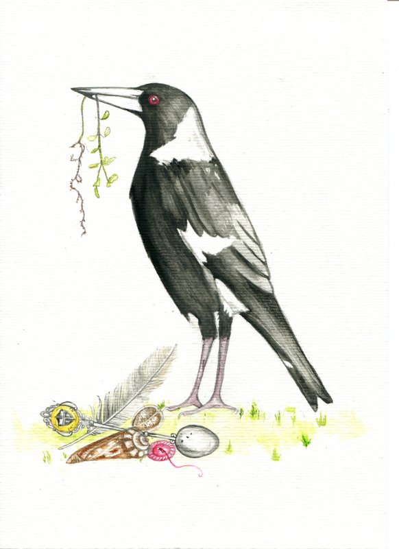 Bit of a belated creative space for me tonight, I just got home from stallholding at the wonderful First Thursdays market. Here I've got the final image from my new zine "My Magpie Eye" which I've finally finished...I started it way back on the 2nd of January!